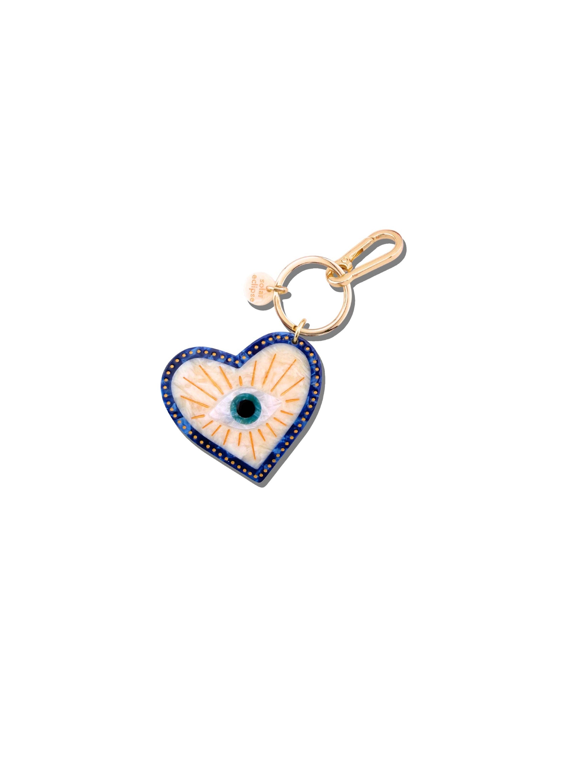 Bring a splash of coastal cool to your everyday carry with this hand-painted lucky eye charm. Crafted in small batches by our Solar Eclipse artists in NYC, each piece is a one-of-a-kind original you won't spot anywhere else. The double-sided design means eye-catching appeal from every angle—clip it to your bag, dangle it from your keys, or mix and match. Built from super-strong, biodegradable acetate made from recycled wood pulp, it's lightweight, luminous, and ready for action. Comes complete with a sturdy carabiner and split keyring. Wrapped in sustainable packaging because good vibes deserve a good home.